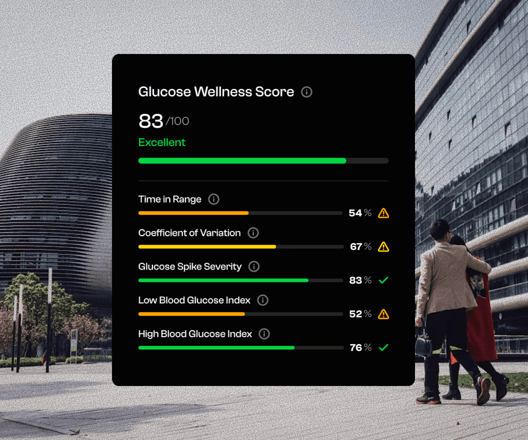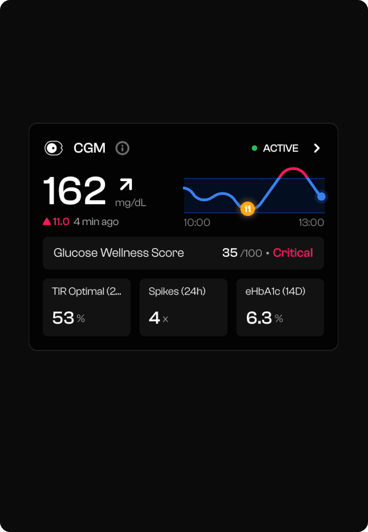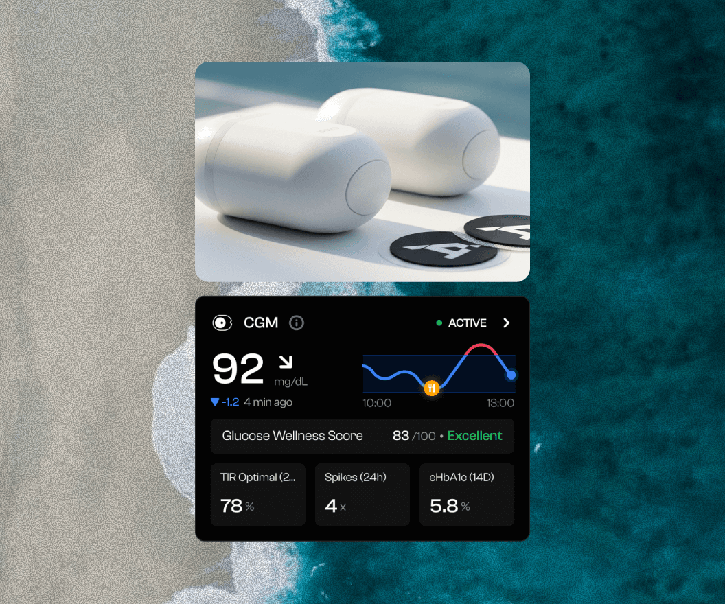 See how your body responds to food, stress, and sleep—24/7, no finger pricks.